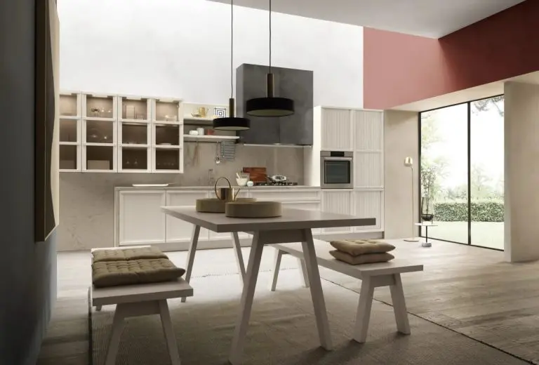 Horizontal and vertical lines merge to form perfectly balanced shapes, enhanced by surfaces characterised by slender vertical lines drawn on the door panels. An element that brings back the style of the past, harmoniously blended in an intentionally understated concept.